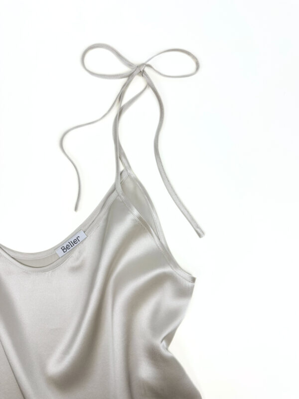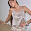 Wykonany z najwyższej jakości jedwabiu top, nie tylko zapewnia skórze delikatność i przyjemność, ale także dodaje elegancji każdej stylizacji. Idealny w zestawieniu z jedwabnymi szortami Fiocco na noc, ale równie świetnie prezentuje się w codziennych stylizacjach.